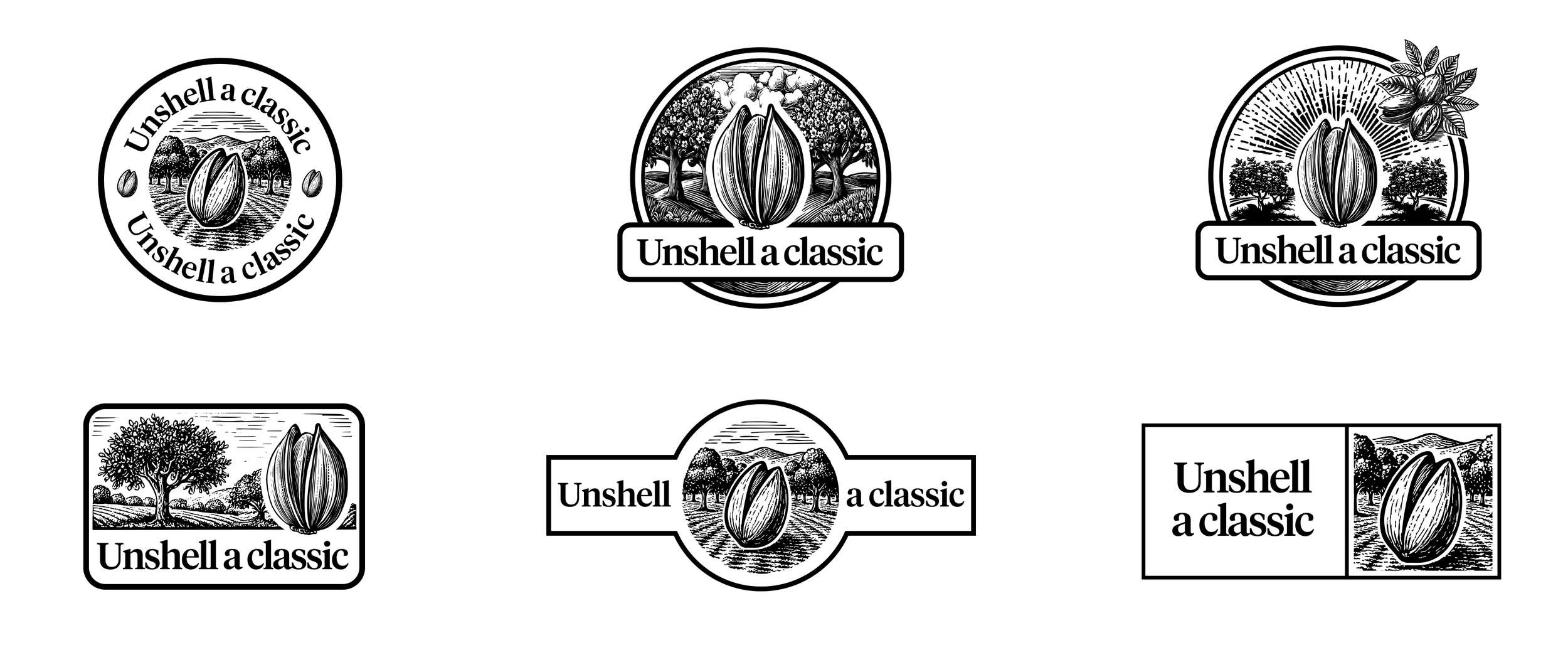 This included the creation of a bespoke logo. This is based on travel stamps and represents the trees and farms where pistachios come from. The design of the digital assets was based on shipping labels. The boxes were designed as a modular system and resizable depending on the content. They were designed to look weathered and well-travelled.