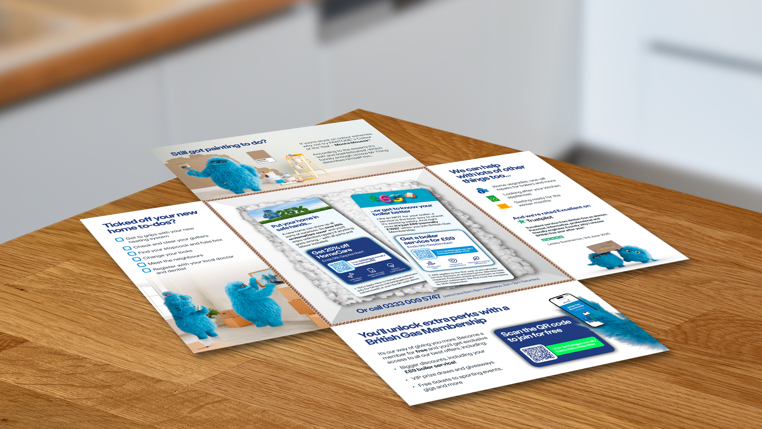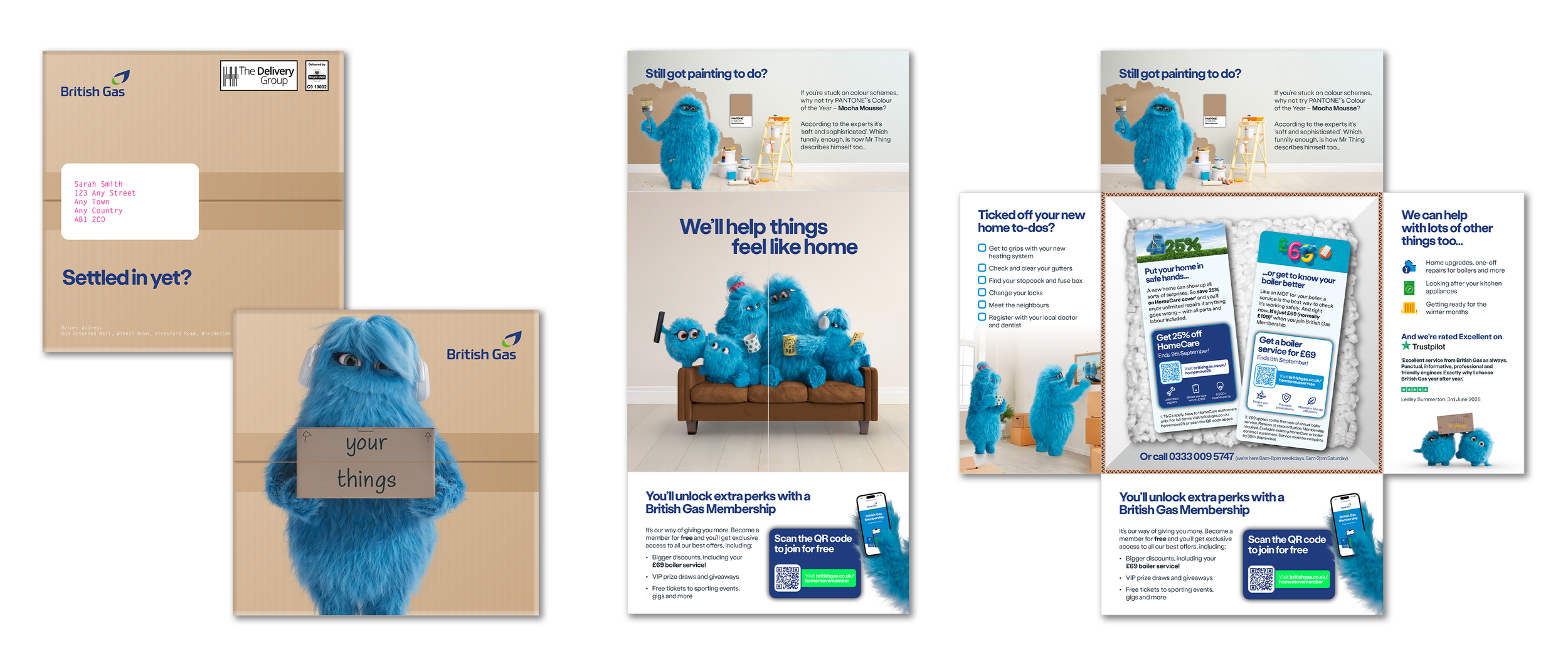 The Things have been introduced into the British Gas brand to represent their customers. Therefore, existing assets were updated replacing real-life customers from an earlier photoshoot with various members of The Things family. This involved retouching the original images but keeping the realism. The Things have been created in a variety of poses and these were used with subtle retouching to adjust the angles of heads and ensuring eye contact is realistic within the scenario. Here are some examples before and after…